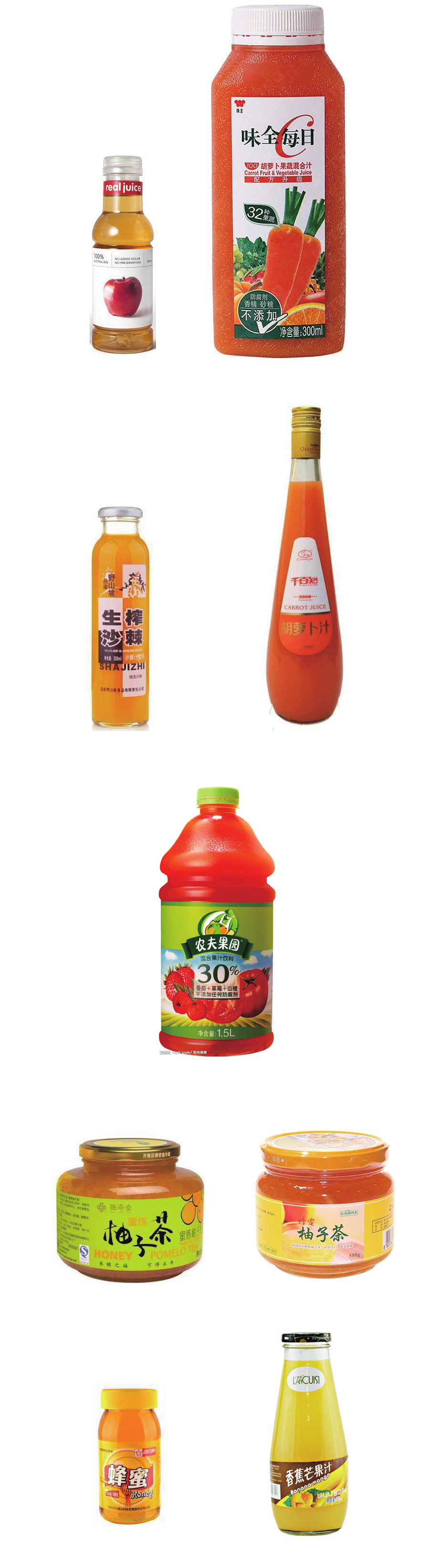 蜂蜜、柚子茶、果汁飲料、乳液等粘稠流體的灌裝、旋蓋、貼標(biāo)生產(chǎn)線